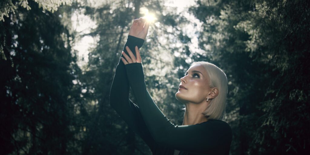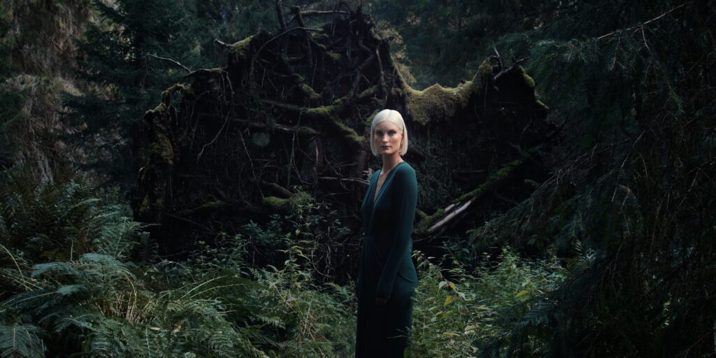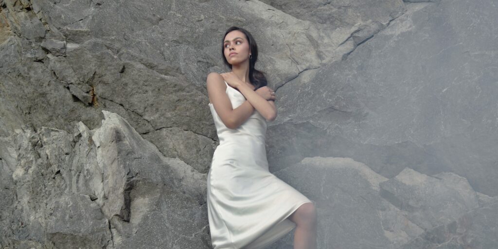 Conversazioni con la Solitudine (A Conversation with Solitude) is a fashion film and a monologue. The poetic narration reveals the protagonist’s inner world as she is coming to an end of a socially distant period in life. It is a story of a goddess of the evergreen forest and how she came to know loneliness. Loneliness took different forms – social, existential, emotional – and she was visited by them all. When the protagonist illuminates the area she understands it may be the last time she is able to reach the other one. Nature’s dramatic changes reflect her inner journey. Through destruction she can find her own inner resources.